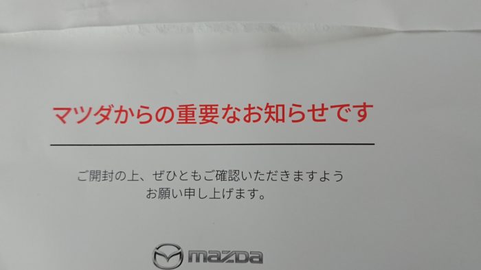フレアワゴンのリコールの案内が来ました。たぶん2回目。リコールは製造会社(スズキ)ではなく販売会社がするんですね。