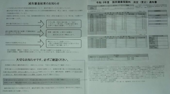 6月21日に、令和6年度国民健康保険料の減免申請をしました。減免申請の結果、減免が承認され、国民健康保険料 決定(更生)通知書が送られてきました。